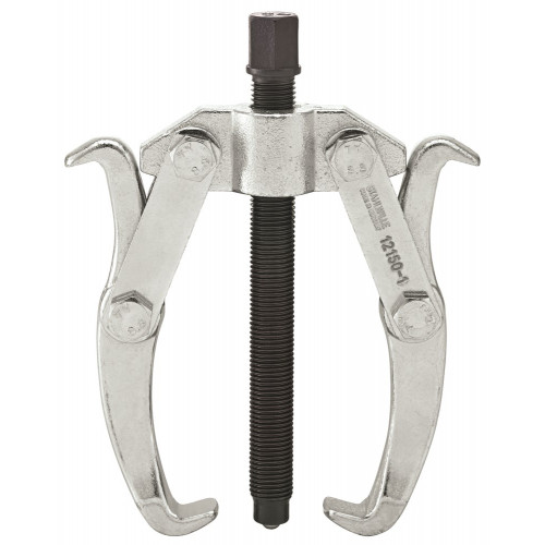 Twee-armig, met omkeerbare, aan beide kanten te gebruiken trekhaken, verzinkt; voor het lostrekken van tandwielen, kogellagers, v-riempoelies, ventilateurwielen en soortgelijke delen van een as of aandrijfas; voor het lostrekken van kogellagers, kogellager-buitenringen en bussen; voor gebruik als binnentrekker moeten de haken worden gezwenkt en de spindel omgedraaid of de haken gedraaid.