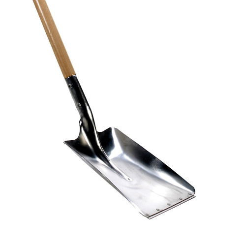 Deze vierkante aluminium schop is geschikt voor het tillen van lichte materialen. Met de rechte snede kan goed in het ‘lichte’ materiaal geduwd worden. Het is echter niet de bedoeling dat de schop met kracht in een berg stevig materiaal geduwd wordt.